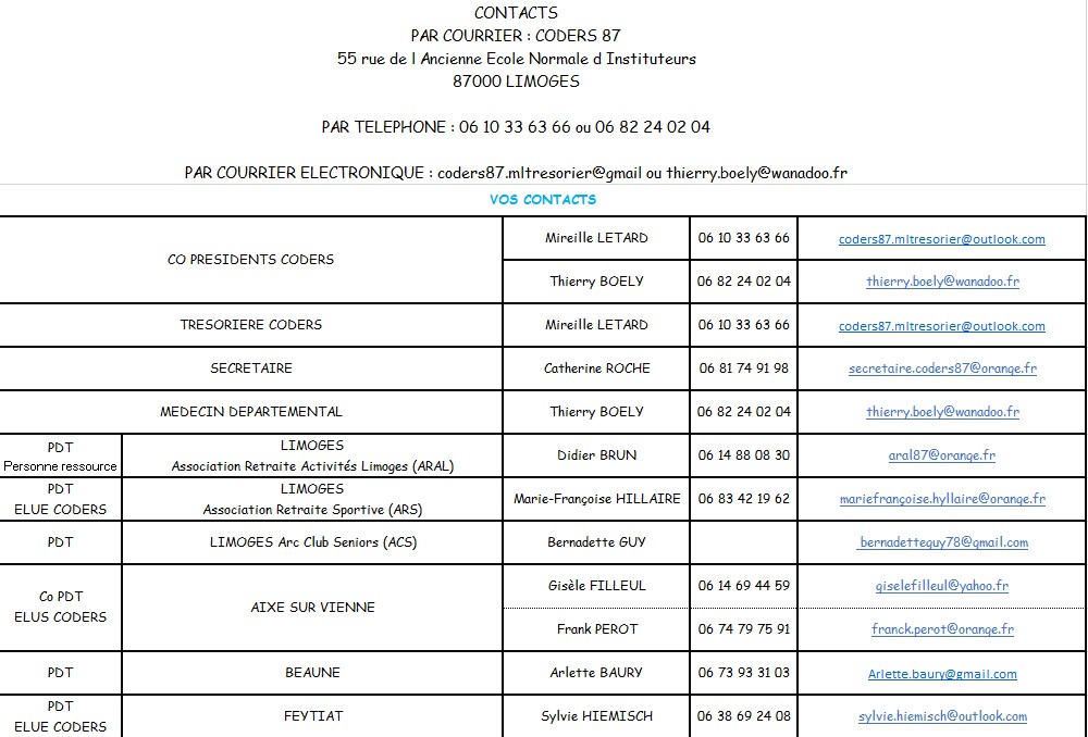 PAR COURRIER ELECTRONIQUE : coders87.mltresorier@outlook.com ou thierry.boely@wanadoo.fr
